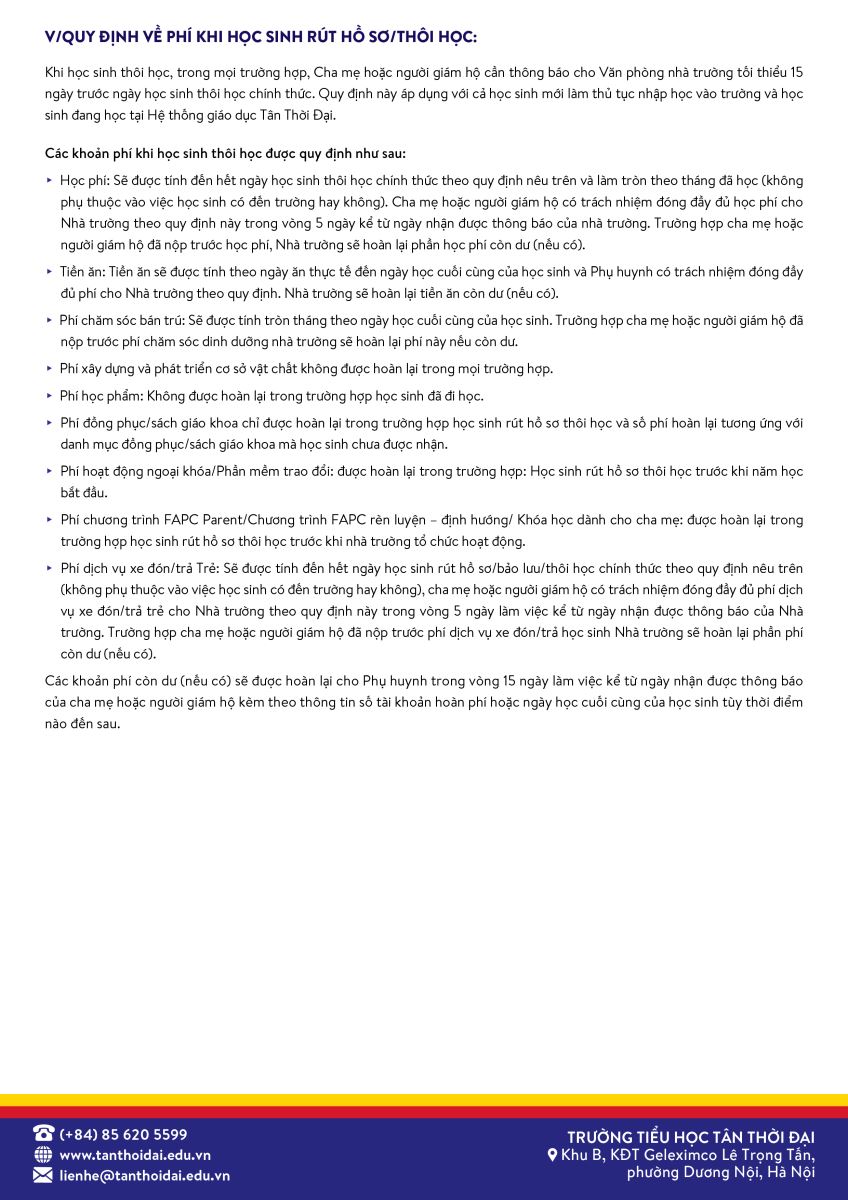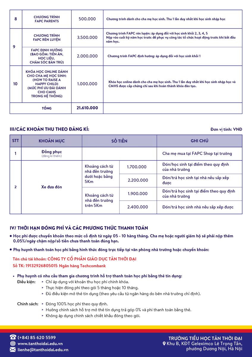 BẢNG PHÍ TÀI CHÍNH TRƯỜNG TIỂU HỌC TÂN THỜI ĐẠI